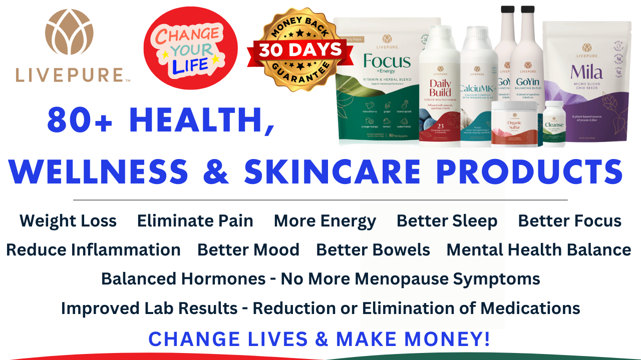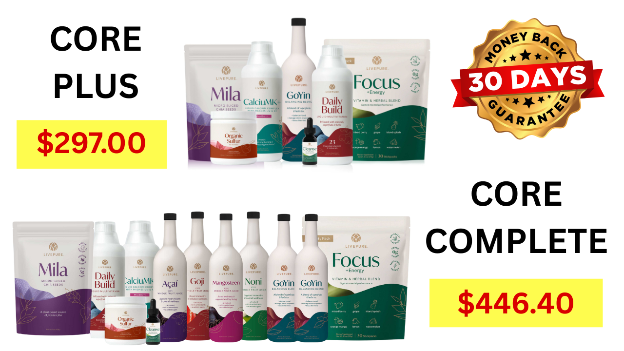 1 of Each LivePure Products, 2 Core Complete Packs + the SkinCare Line for FREE! Change the Lives of Your Entire Family. Quickest Path To Your Self-Employed Success & Residual Income! Ongoing Specialized Training, Mentoring & Coaching To Build & Grow Your Business...The Personalized Support Is PRICELESS