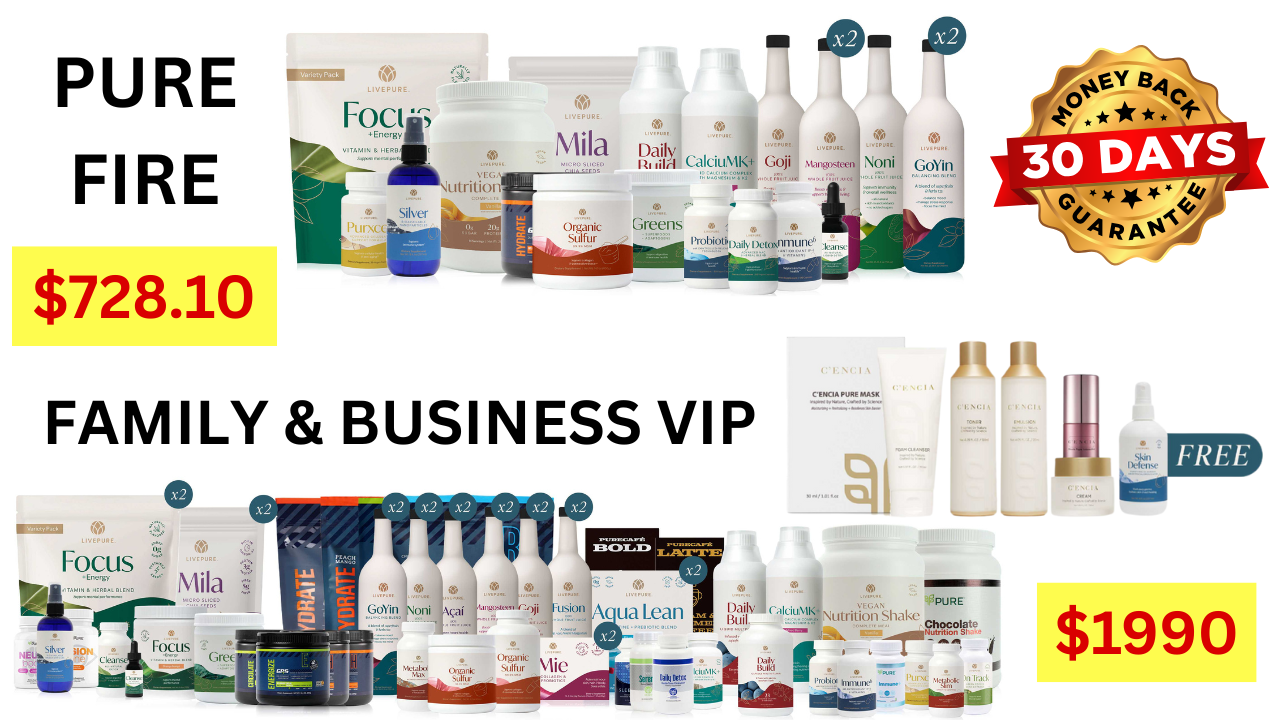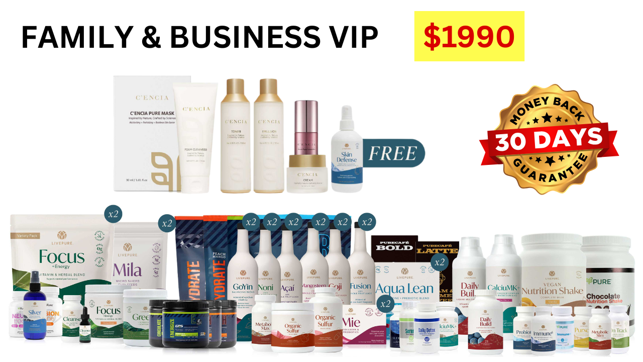 Business VIP Pack + Ongoing Specialized Training, Mentoring & Coaching To Build & Grow Your Business...The Personalized Support Is PRICELESS! 1 of Each LivePure Products & 2 Core Complete Packs. Quickest Path To Your Self-Employed Success & Residual Income!