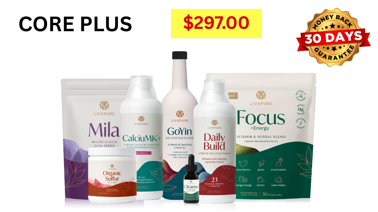 CORE PLUS is a great way to enhance your foundation! This 7 item pack offers products to support your wellness journey with a comprehensive blend of vitamins, minerals, antioxidants & proteins your body needs to thrive & feel its best.